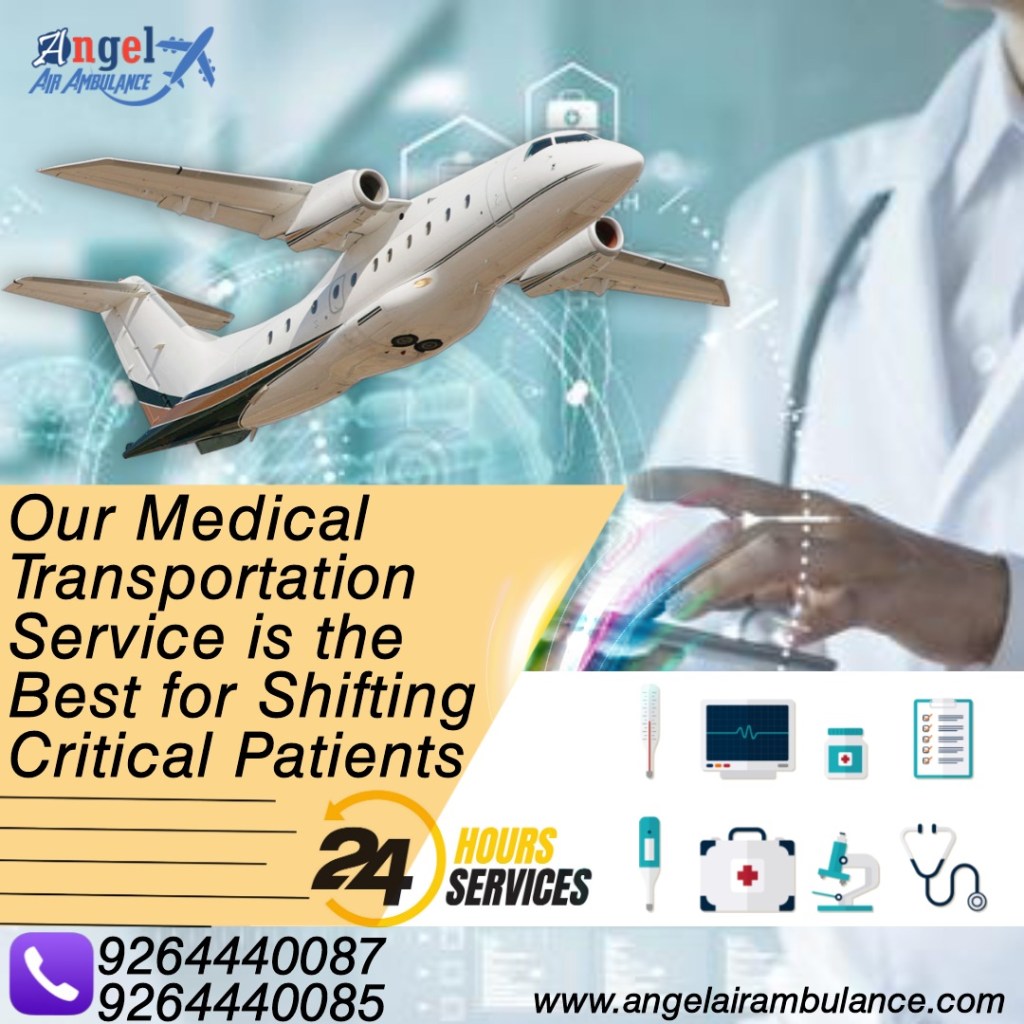 The air medical transportation service provided by Air Ambulance Service in Patna embraces a significant spot in saving the lives of the patients and liberating them from medical emergencies. We operate with medically outfitted aircraft ambulances that remain available with facilities as per the specific needs and requirements of the patients. Our medical airliners have all the necessary medical gadgets present onboard that can keep the health of the patient in a sound state until the evacuation process gets concluded. We have a dedicated flight chamber to maintain the privacy of the patients.Angel Air Ambulance Services from Patna to Delhi and any hospital shift the patients and save the life.